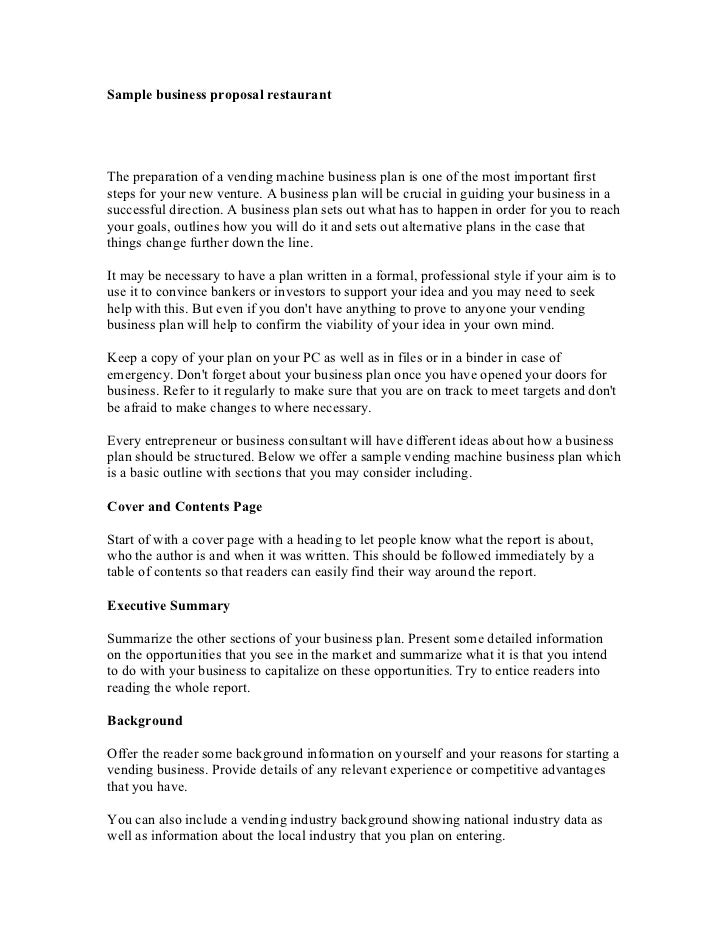 Sample business proposal restaurant
